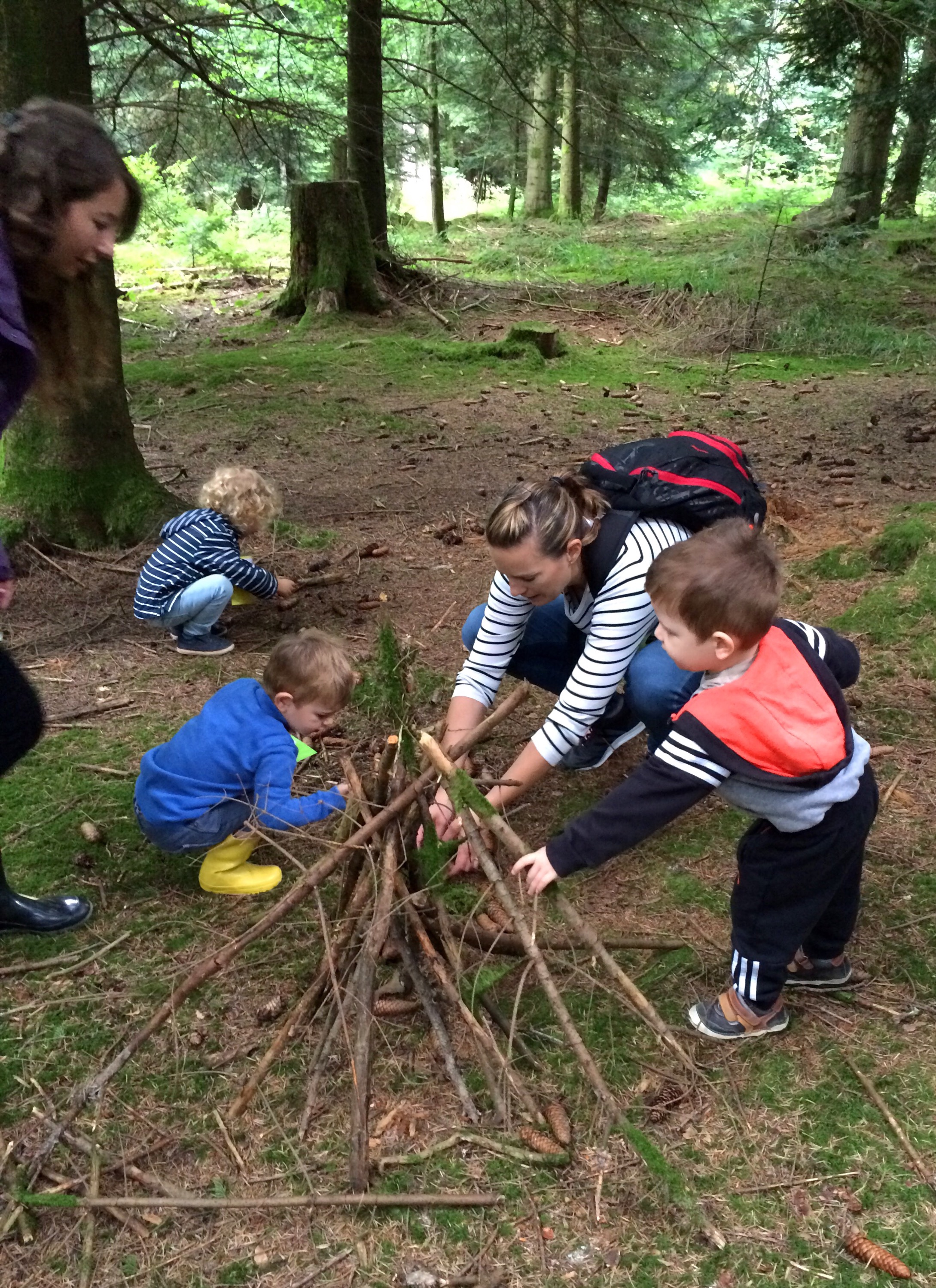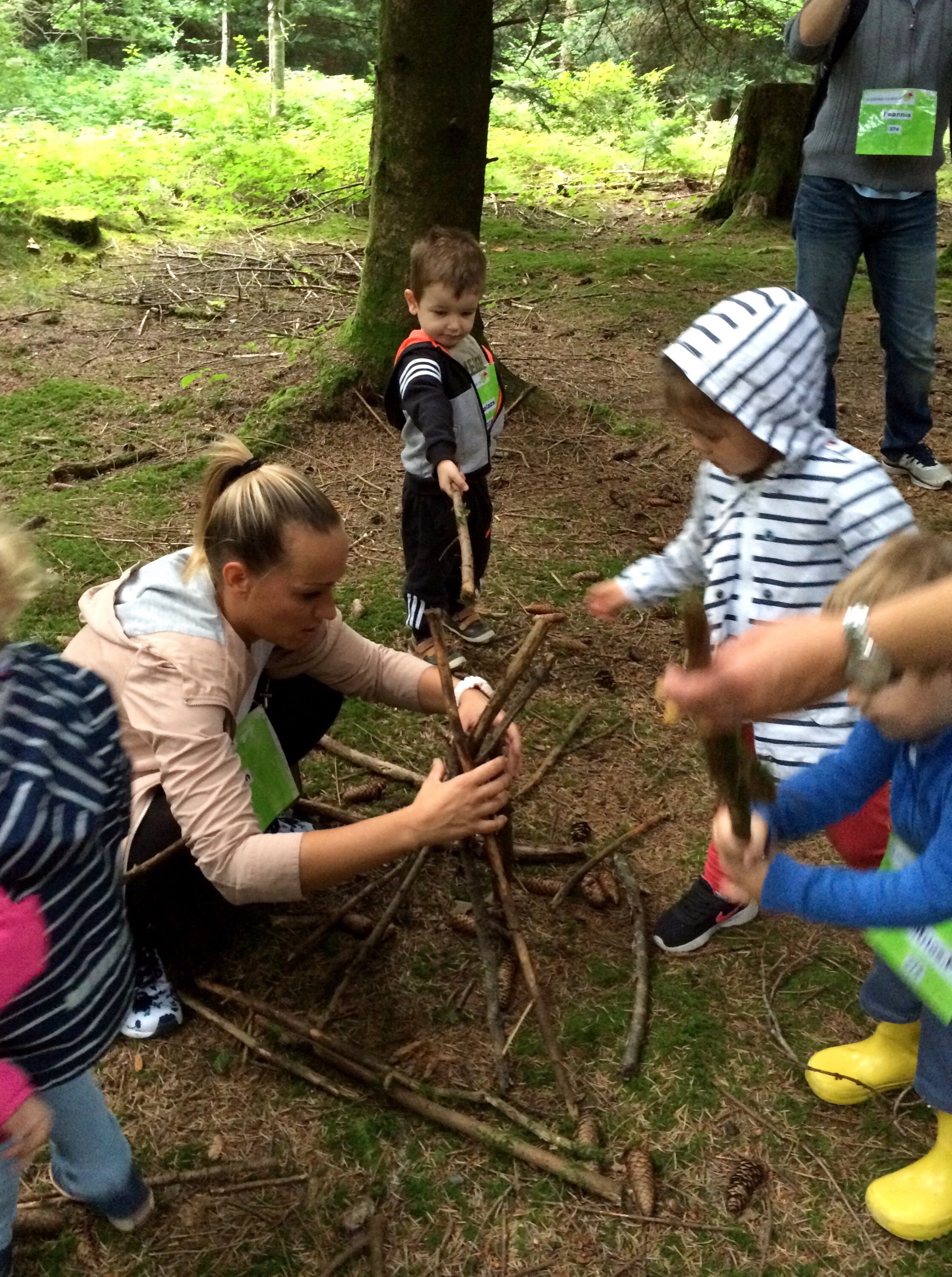 Volt egy állomás, ahol faágakból házikót és hozzá mohából egy utacskát kellett építeni. Minden gyerek segített és a végén született egy csoportkép is.