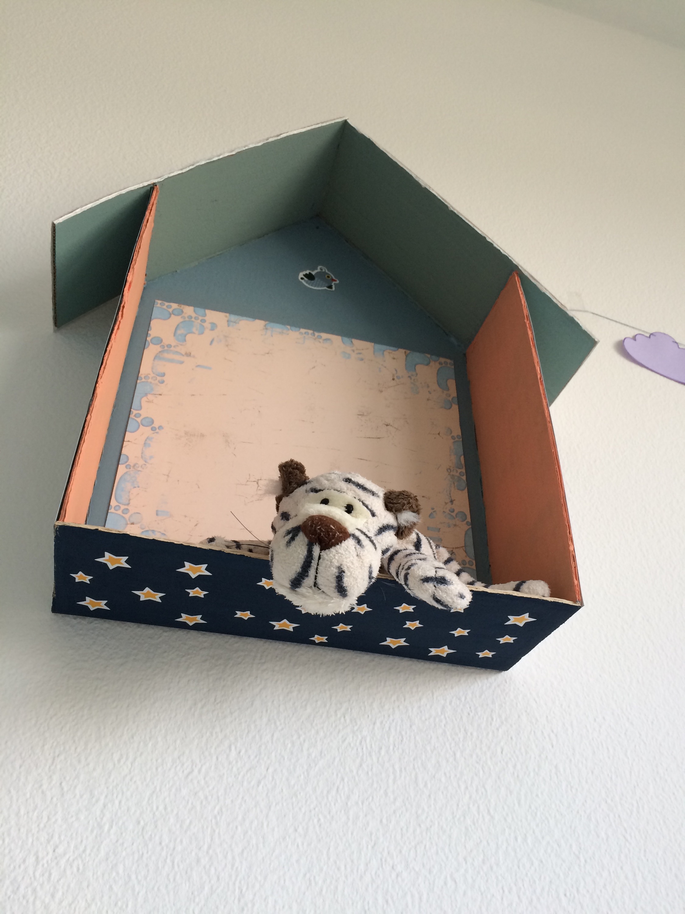 Kartonból készült, úgyhogy csak könnyebb tárgyak és plüssök tárolására alkalmas, de mivel úgyis elég széles a pelenkázó szekrény, nehéz elérni a falat, úgyhogy nem is nagyon használnánk polcként.