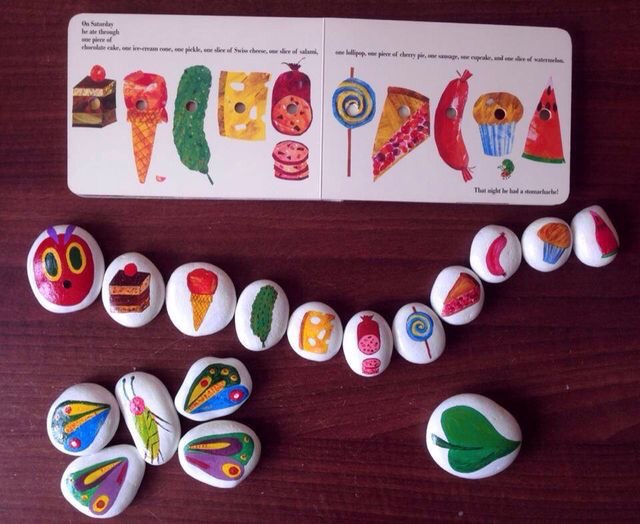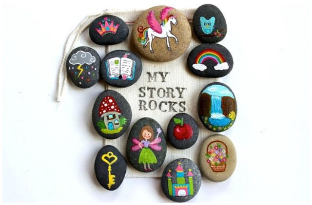 4. Készíthetünk festett kavicsokat a kedvenc mesekönyvünkhöz is, így el is tudjuk játszani a történetet.