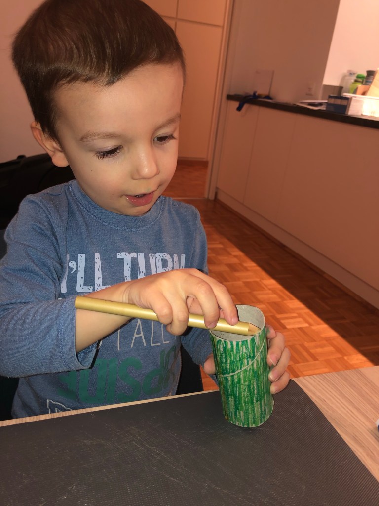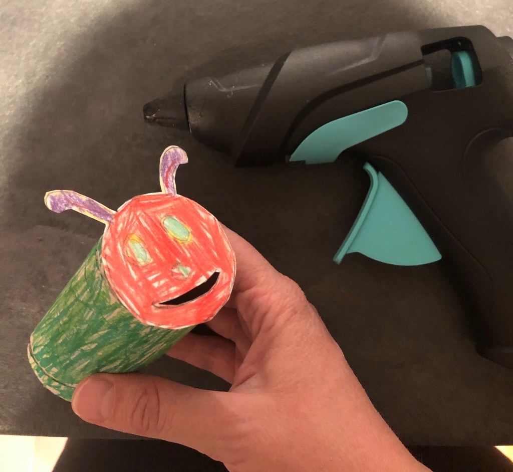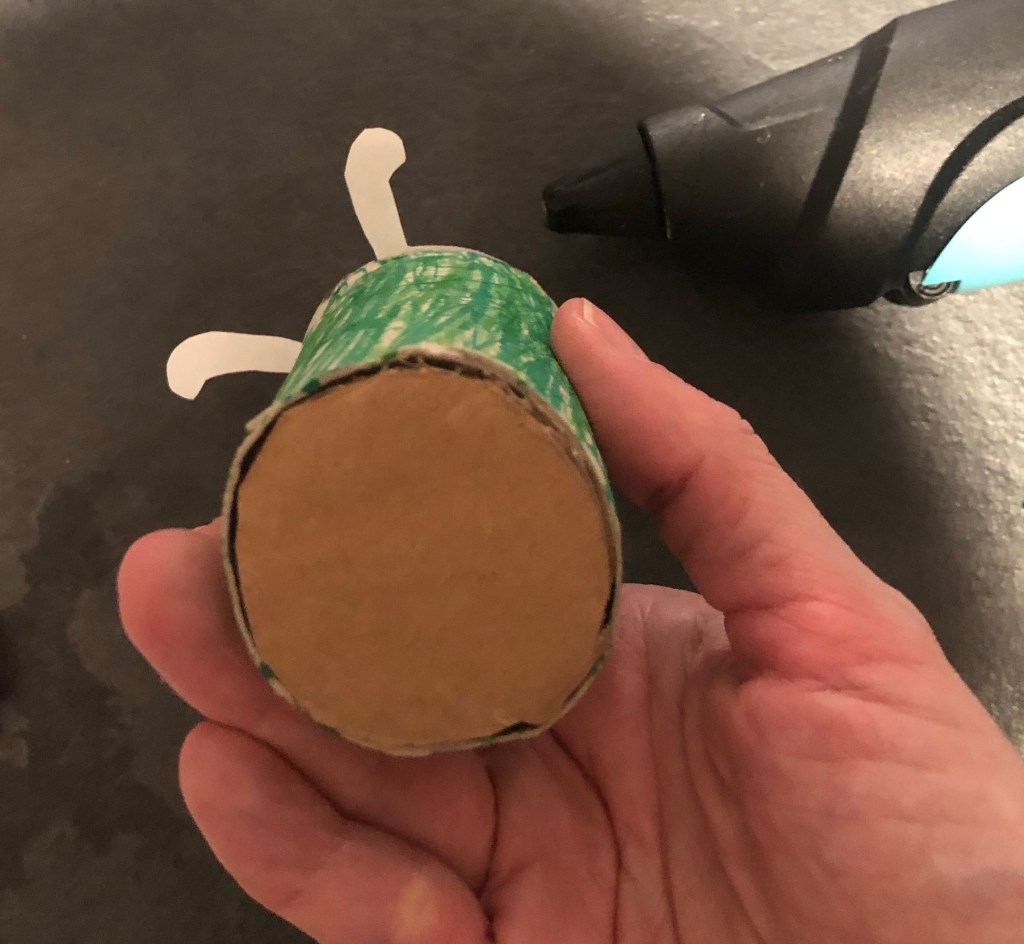 4. A hernyó fejét ragasszátok a papírguriga egyik végére.