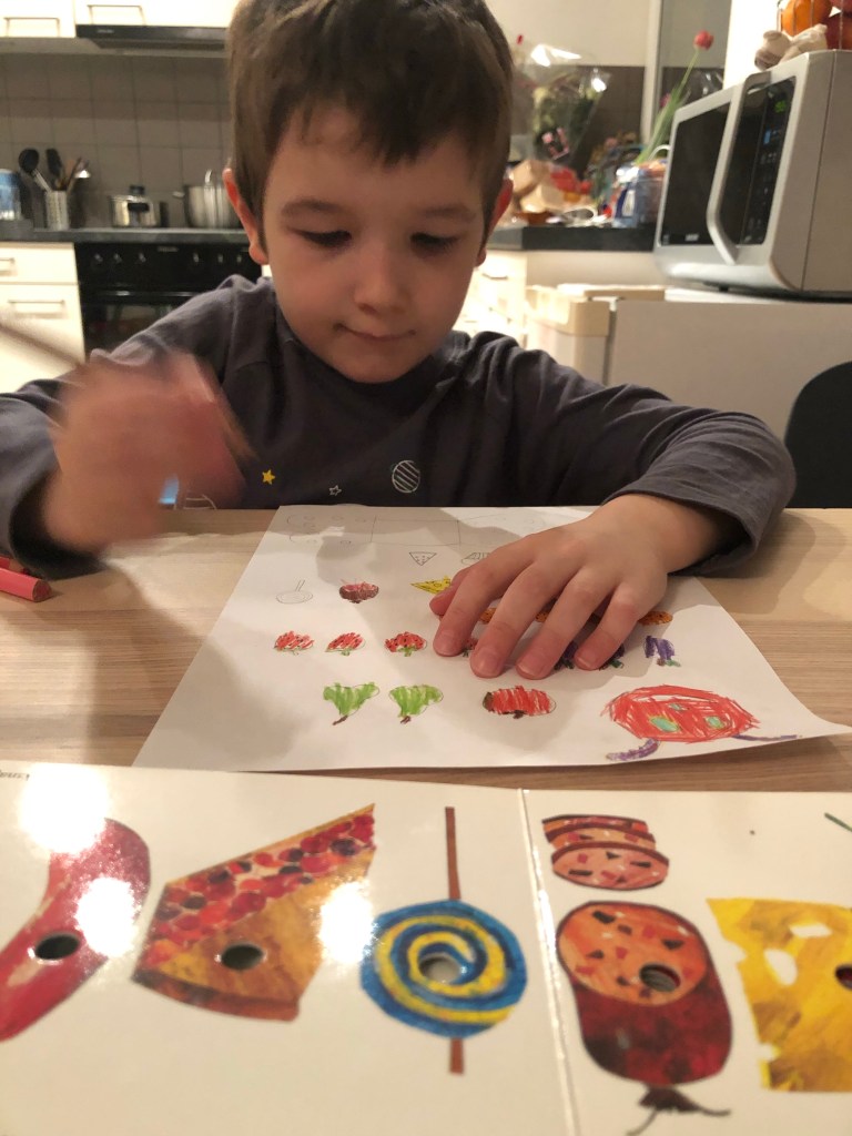 A hét napjai és a számok is megjelennek, és közben észre se vesszük, hogy a természet egyik csodájával (azzal hogy hogyan alakul át a hernyó pillangóvá) is megismerkednek gyerekek.