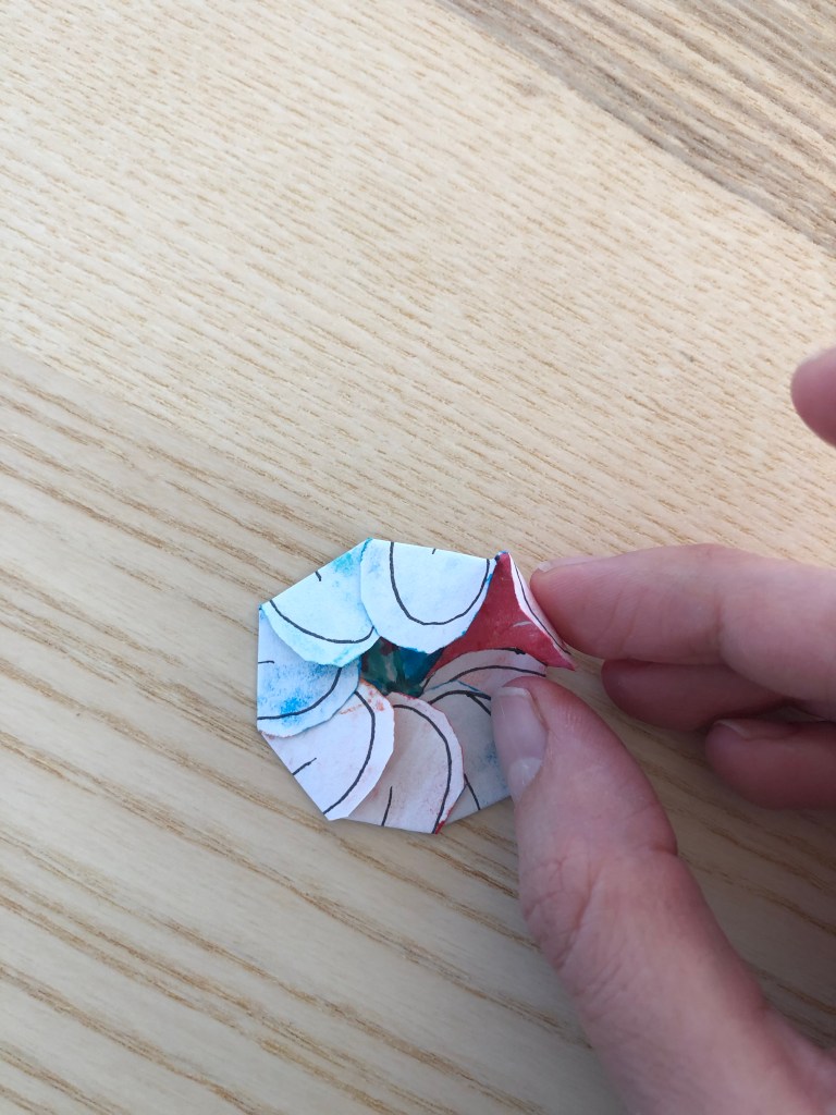 3. A színes oldallal felfelé behajtogattuk a szírmokat