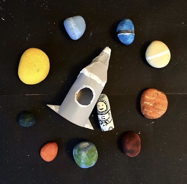 Most, hogy itthon vagyunk, kitaláltam, hogy kavicsokat kifestünk és készítünk egy Naprendszert.