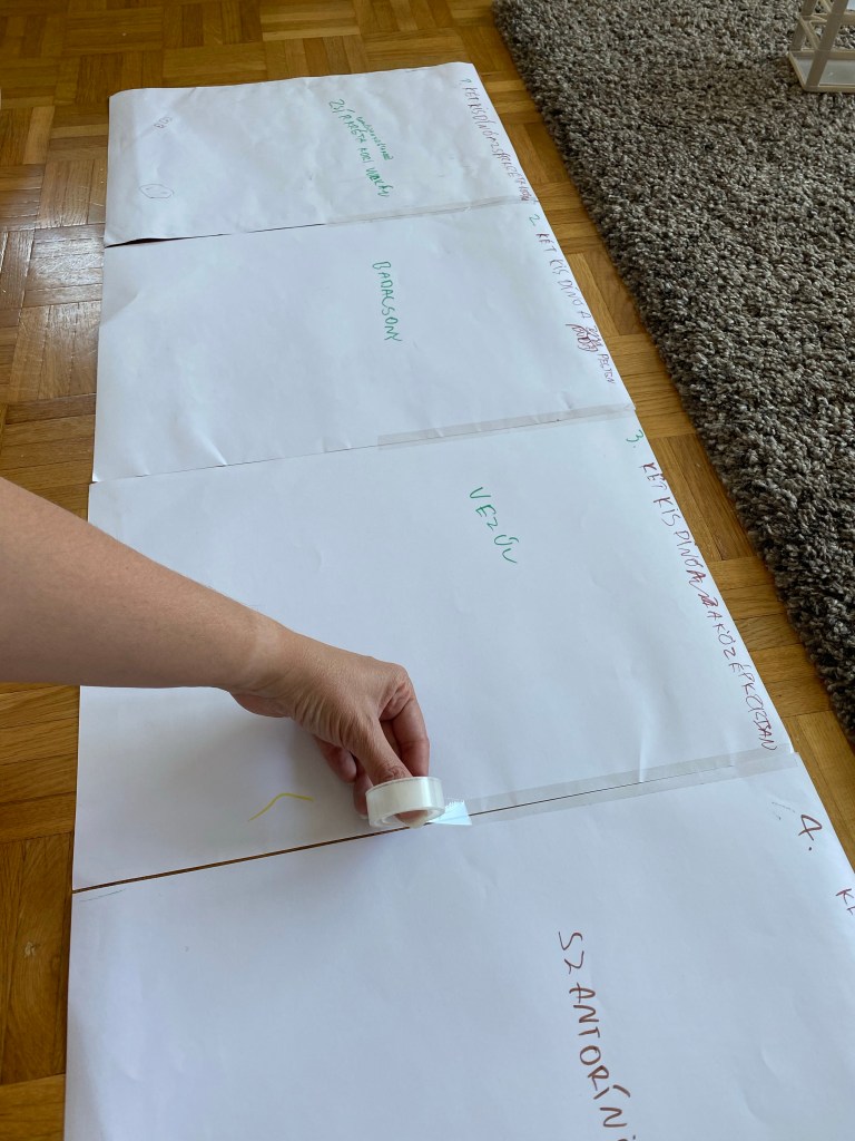 Jó kis ‘játszva tanulás’ volt elkészíteni a vulkánt. Egyesével kerestünk róluk képeket, próbáltunk hasonlót rajzolni /a Kréta korin láva is lett, a Badacsonynak bazaltkúpokat is rajzoltunk…/