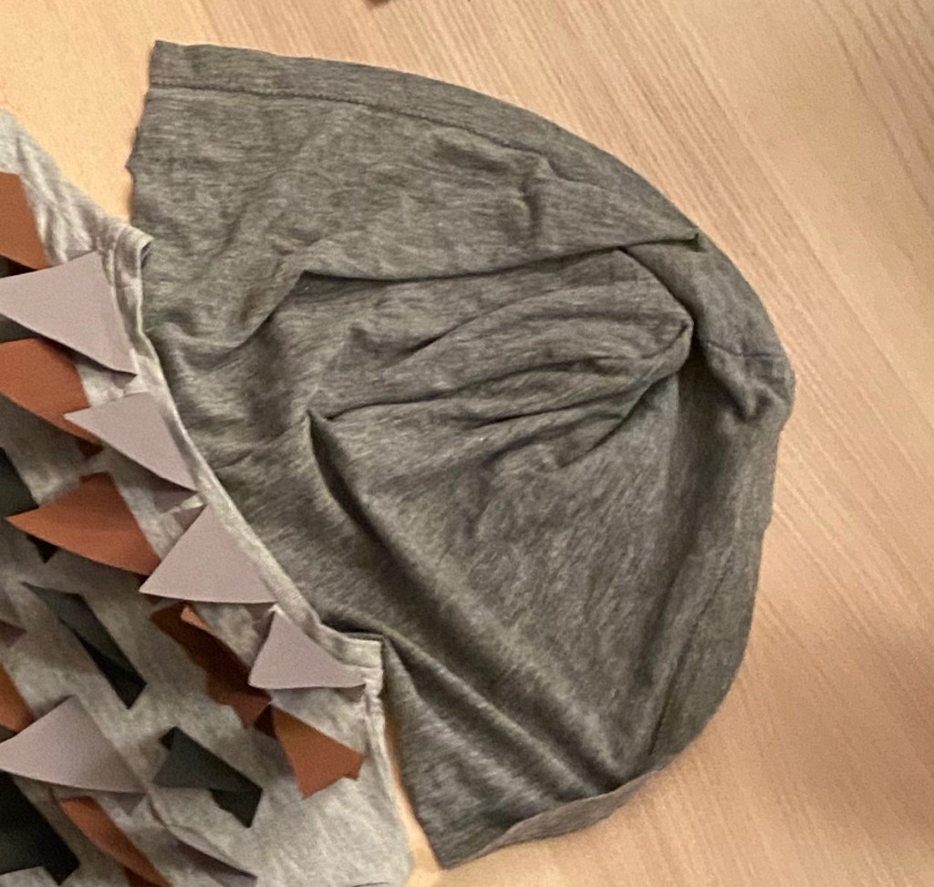 Először rögzítettem a kapucnit, de még egyszerűbb ha találsz kapucnis felsőt ehhez a jelmezhez.