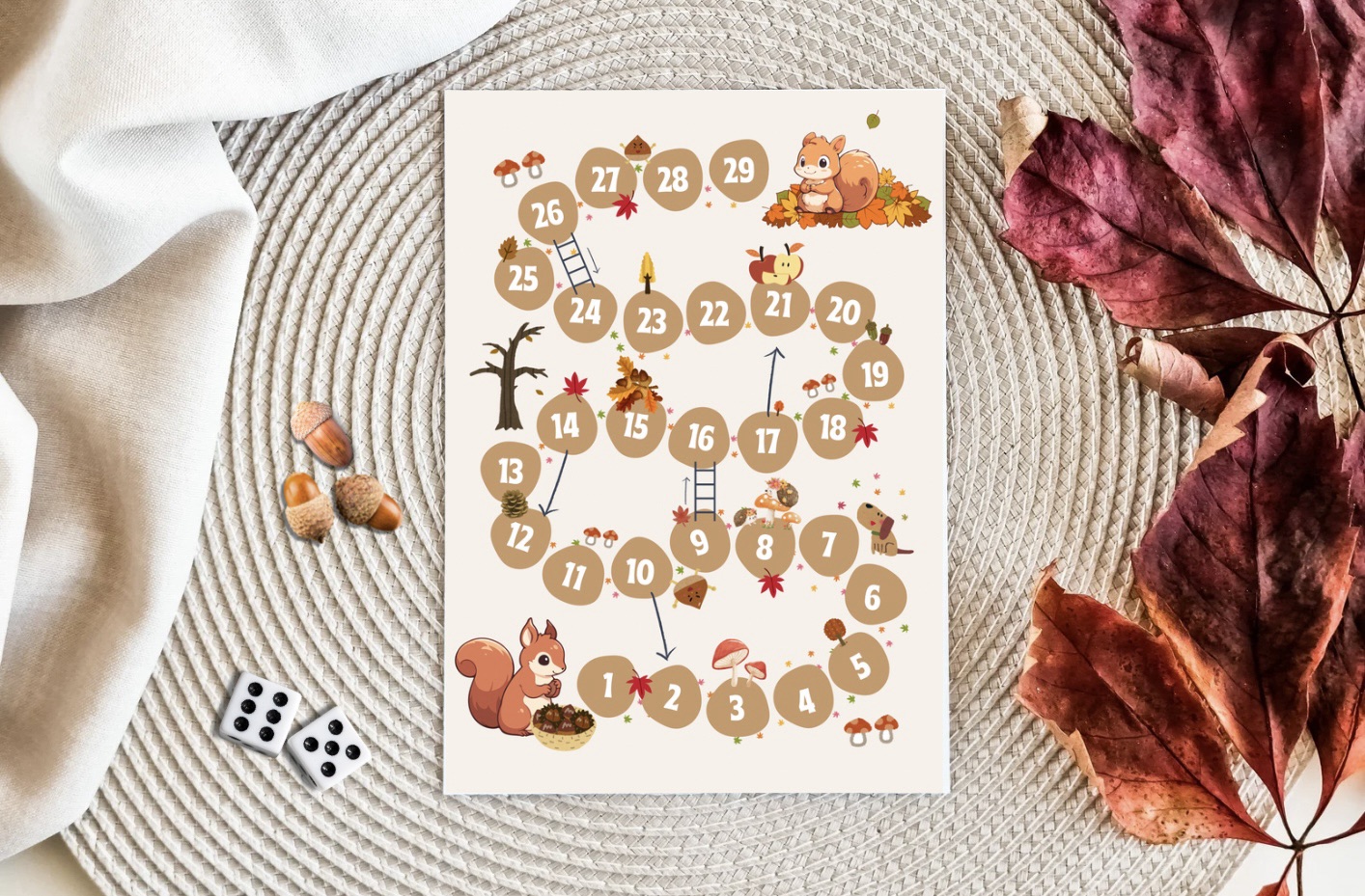 Segíts Mókusmamának hazavinni a sok mogyorót, amit gyűjtött! Siess, a Kismókus már nagyon éhes! Nyomtasd ki a társasjátékot, kell hozzá annyi bábu ahányan vagytok és egy dobókocka. Bábu lehet akár makk/mogyoró vagy gesztenye is;)