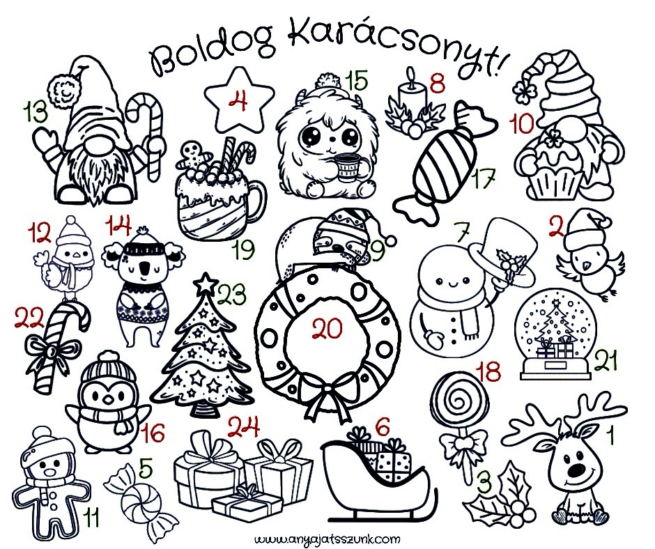 Minden nap egy kis képet kell kiszínezni. Karácsonyra az egész kép színes lesz. ☺️