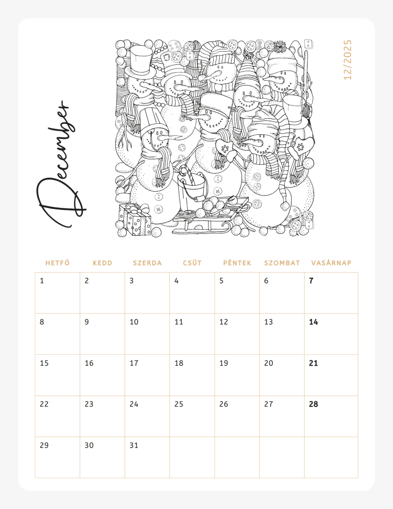 Karácsonyi meglepetésem: 2025-ös Naptár, melyet a gyerekek kiszínezhetnek