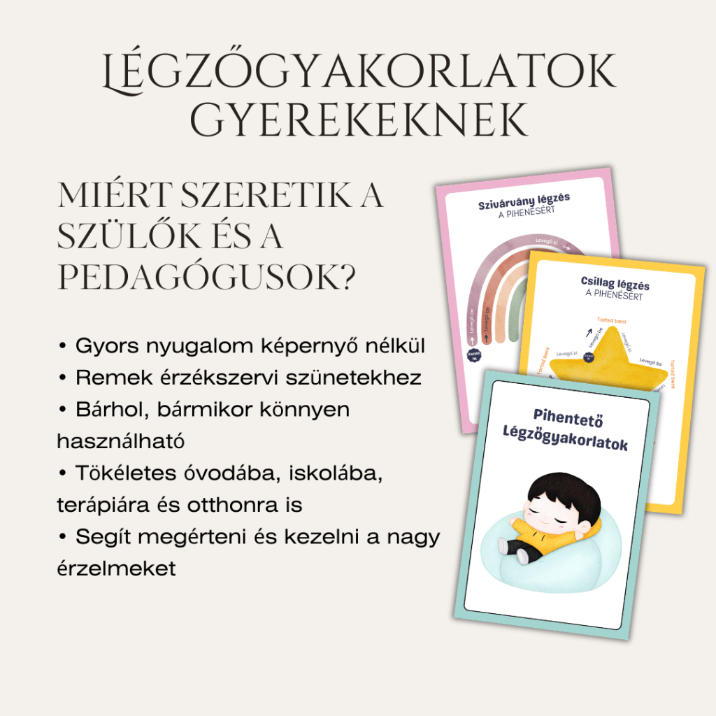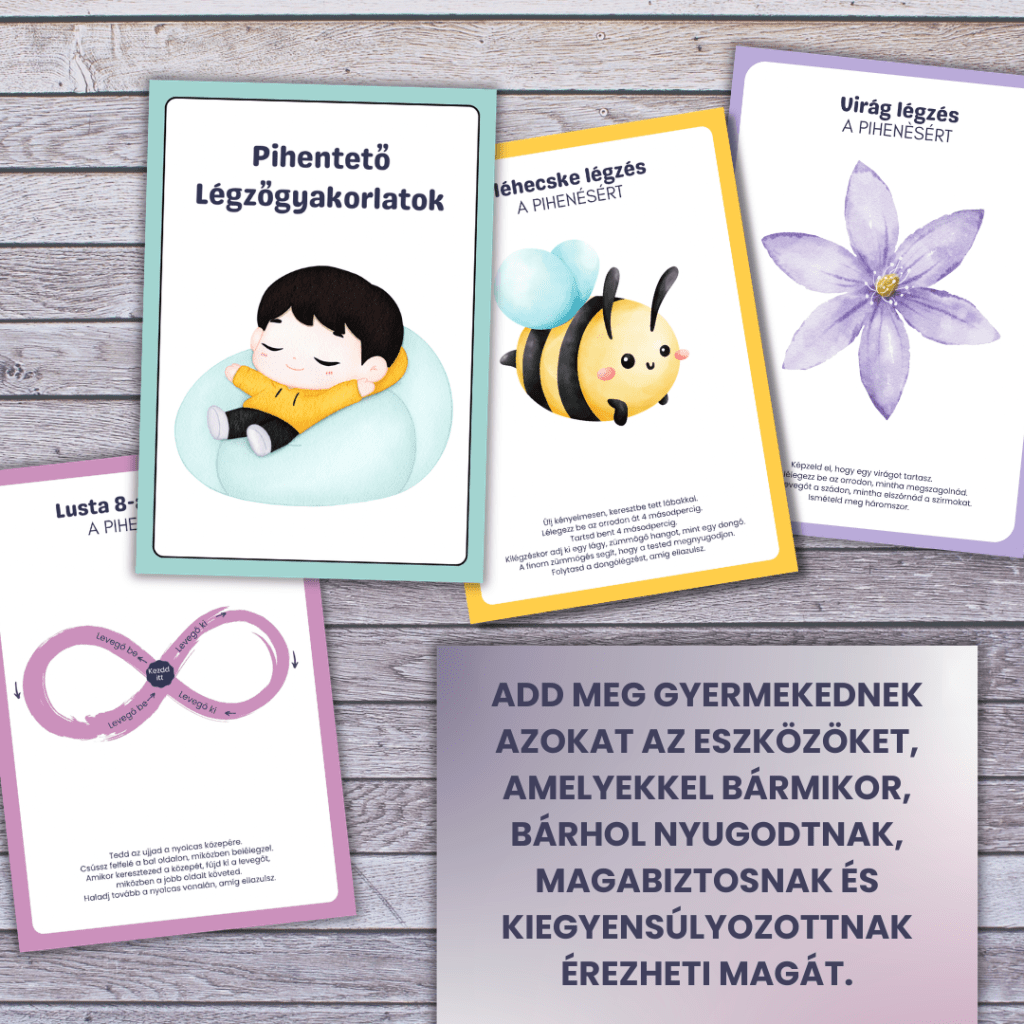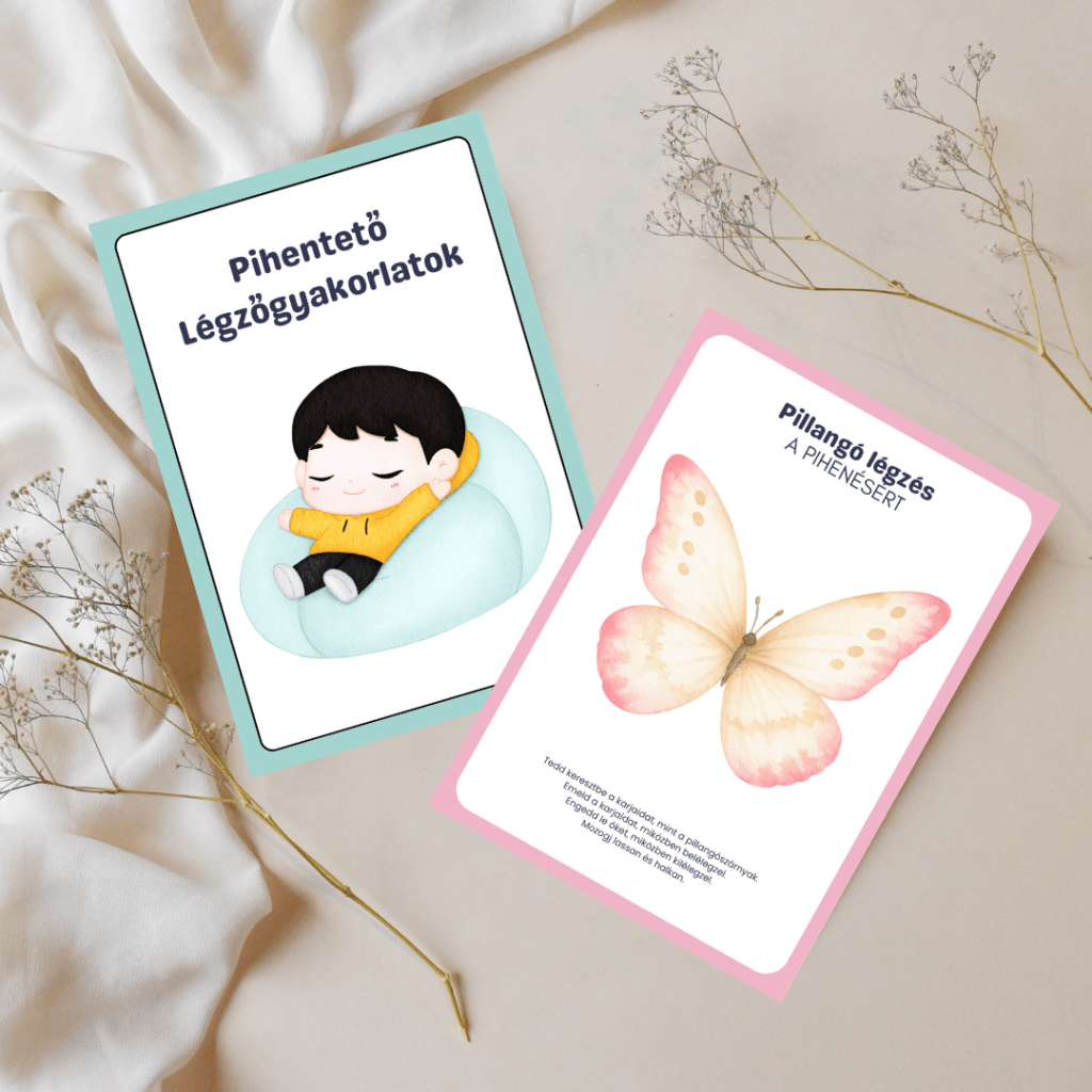Pont ezért született meg a saját légzőgyakorlatos kártyacsomagod — hogy a gyerekek kezébe adj valami szépet, érthetőt, szerethetőt. A kártyák:
