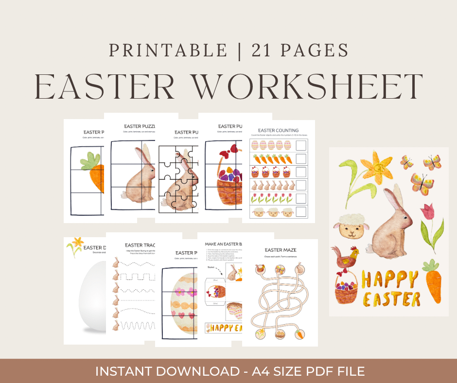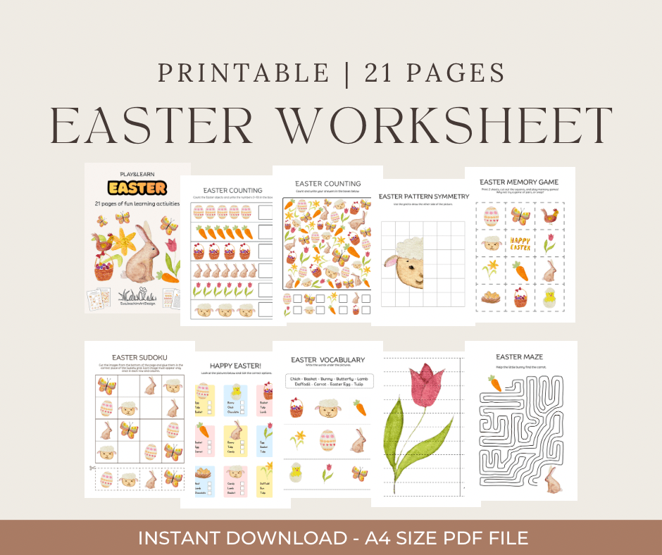 Play&Learn Easter Worksheet – 21 oldalas, húsvéti feladatcsomag